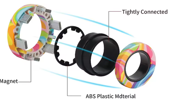 3pcs Finger Magnetic Rings Colorful Fidget Toy Set Adult Magnets Spinner Rings for Relieve Stress Anxiety Relief Therapy